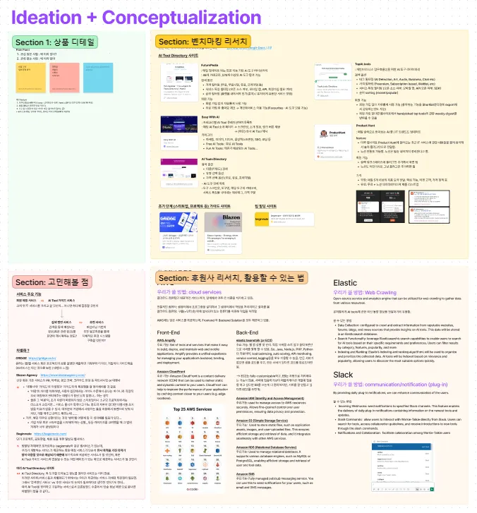 During this phase, our primary focus was the development of the core features for our product. My primary role involved conducting benchmarking and competitor analyses, which encompassed evaluating AI Tool directory websites, team-building platforms, and emerging start-up guide websites. Through this analysis, we carefully examined various factors, including how we could differentiate ourselves from competitors and which features to prioritize. Additionally, we dedicated considerable attention to researching and gaining proficiency in the tools provided by our sponsors.